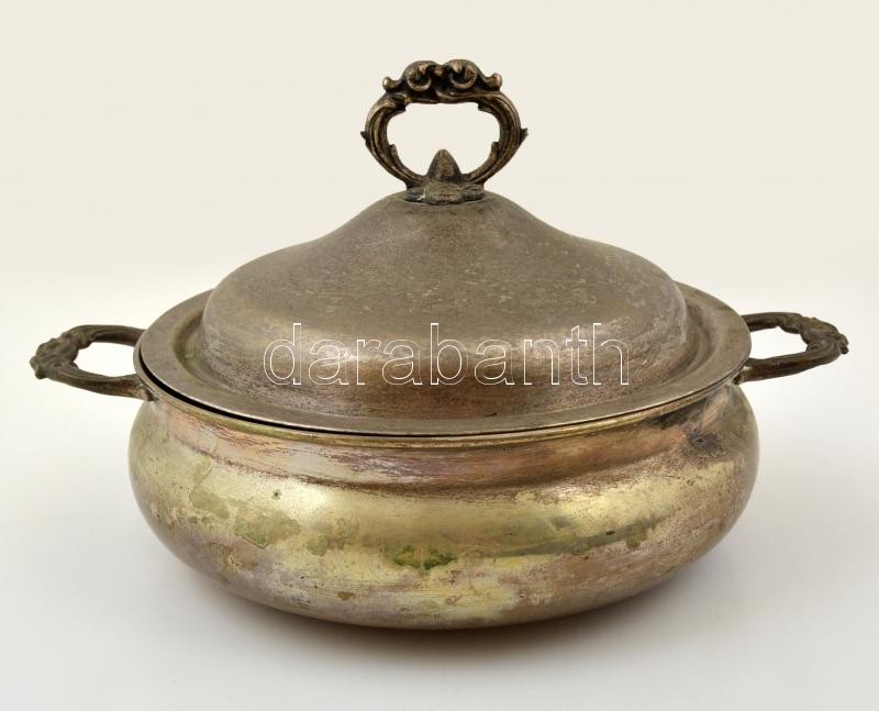 Leírás: Leonard silver ezüstözött fém fedeles edény, jelzett, kis repedéssel, 33×24 cm, m:20 cm