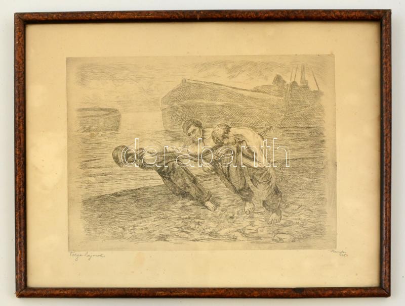 Komlós jelzéssel: Hajósok. Rézkarc, papír, üvegezett keretben, 17×24 c... https://www.darabanth.com/hu/292-Gyorsarveres/292.0/Festmeny-mutargy-papirregiseg-egyeb/Festmenyek-es-grafikak~1/Komlos-jelzessel-Hajosok-Rezkarc-papir-uvegezett-keretben-17C39724-cm~II1546290