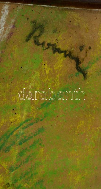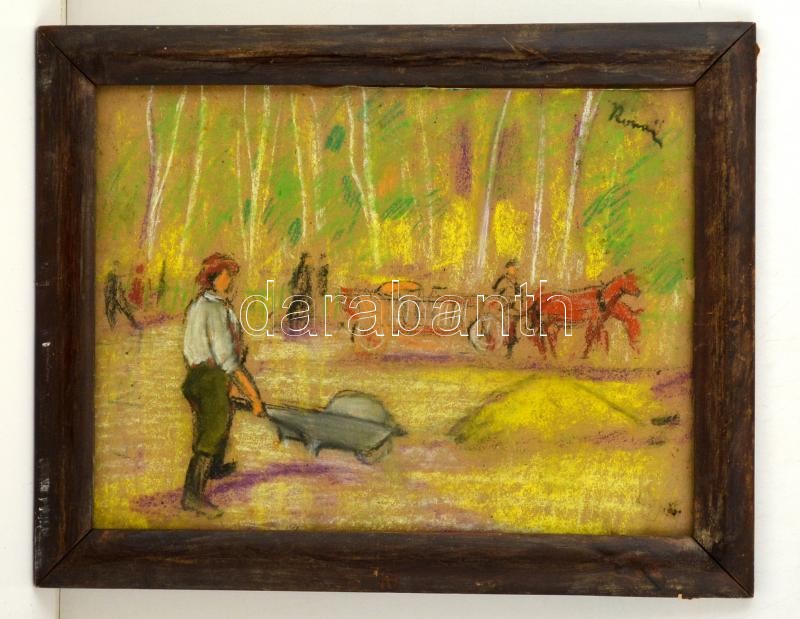 Leírás: Rónai jelzéssel: Talicskázó kertész. Pasztell, papír, üvegezett keretben, 29×39 cm