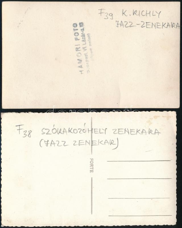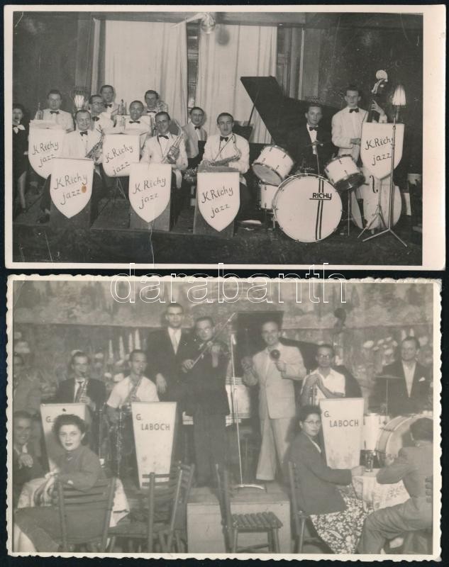 Leírás: Régi idők zenéje: K. Richy és Gerard Laboch zenekarai, 2 db fotó, hátuljukon feliratozva, 8,5×13 cm