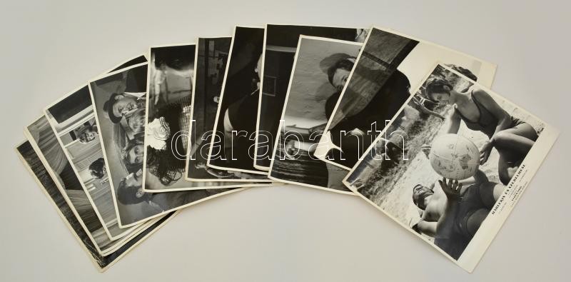 Leírás: cca 1965 Öt magyar film 13 jelenete, 13 db feliratozott vintage fotó, 24x20 cm