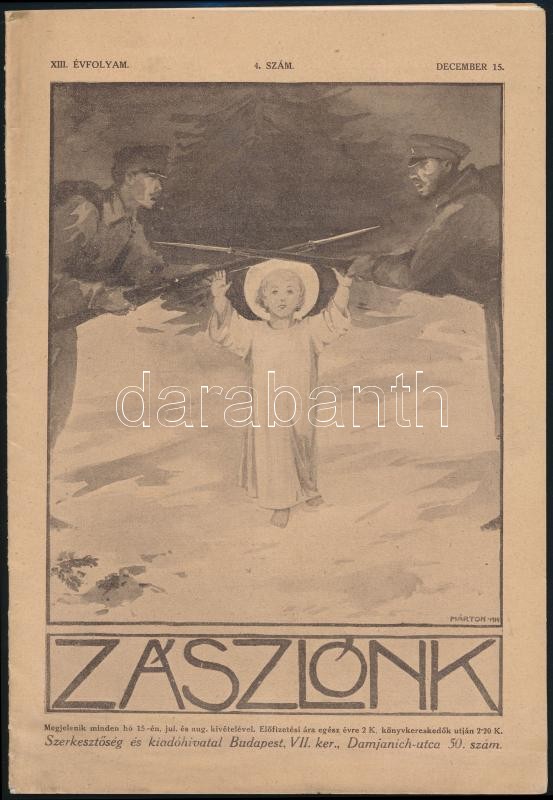 1914 A Zászlónk című újság XIII. évfolyamának 4. száma, benne háborús ... https://www.darabanth.com/hu/292-Gyorsarveres/292.0/Festmeny-mutargy-papirregiseg-egyeb/Nyomtatvanyok~30/1914-A-Zaszlonk-cimu-ujsag-XIII-evfolyamanak-4-szama-benne-haborus-hirekkel~II1545432