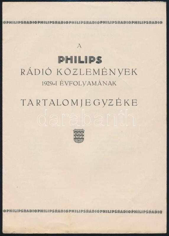 1929, 1941 A Philips Rádió Közlemények évfolyamának tartalomjegyzéke +... https://www.darabanth.com/hu/292-Gyorsarveres/292.0/Festmeny-mutargy-papirregiseg-egyeb/Nyomtatvanyok~30/1929-1941-A-Philips-Radio-Kozlemenyek-evfolyamanak-tartalomjegyzeke-plus-A-Siemens-Radio-pros~II1545119