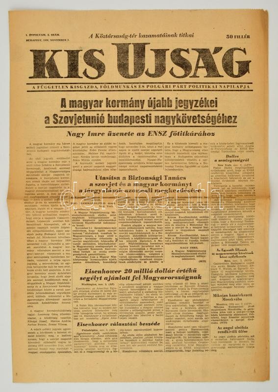 1956 A Kis Újság, a Független Kisgazda, Földmunkás és Polgári Párt Pol... https://www.darabanth.com/hu/292-Gyorsarveres/292.0/Festmeny-mutargy-papirregiseg-egyeb/Nyomtatvanyok~30/1956-A-Kis-Ujsag-a-Fuggetlen-Kisgazda-Foldmunkas-es-Polgari-Part-Politikai-Napilapja-novem~II1548734