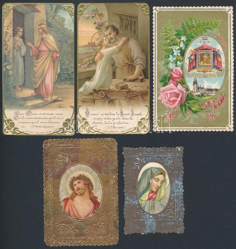 Leírás: 5 db dombornyomott, aranyozott litho szentkép, jó állapotban