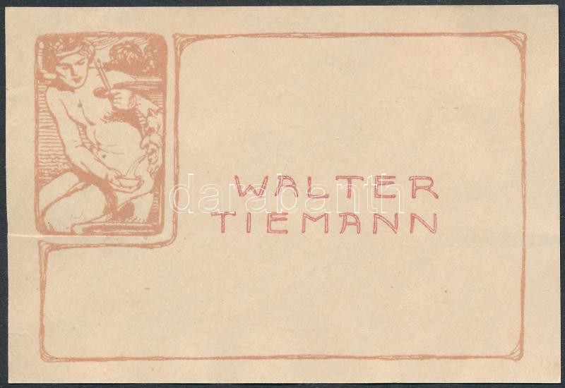 Leírás: cca 1900 Walter Tiemann (1876-1951) német grafikus, könyvillusztrátor szecessziós névjegye