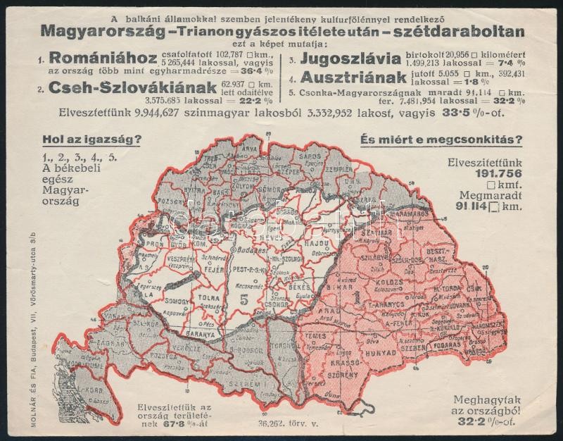 Leírás: cca 1920 Magyarország a trianoni békeszerződés után, irredenta szórólap térképpel