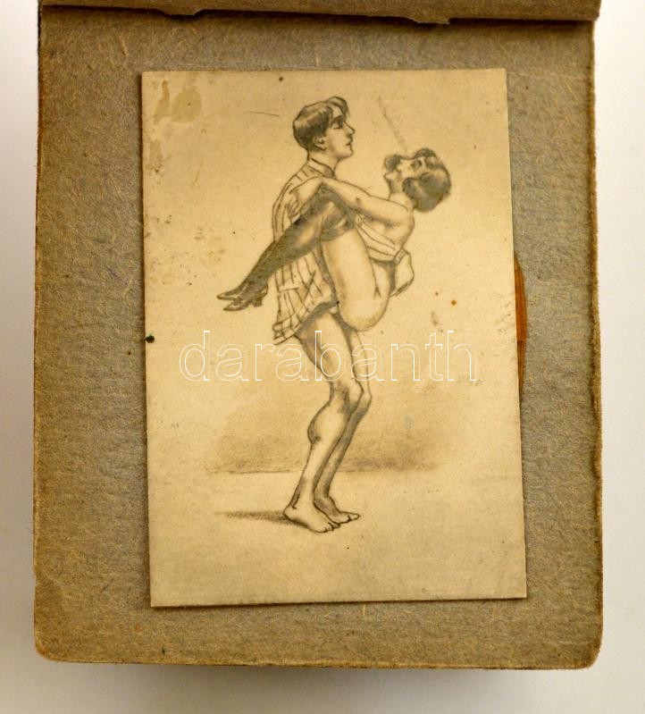Leírás: cca 1920 Pornográf rajzokról készült nyomatok, 9 db, kisméretű papírborítású füzetecskében, 4x6 cm