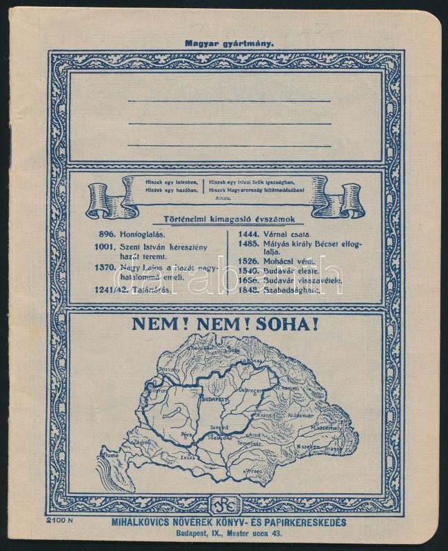 Leírás: cca 1930 2 db irredenta címlapos iskolai füzet