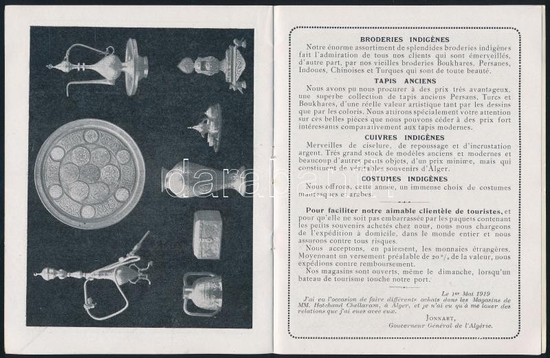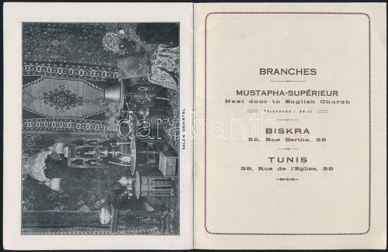 cca 1930 Hotchand Chellaram Oriental Store, Algír keleti bolt prospektusa, fekete-fehér fotókkal, angol és francia nyelven, 12 p. / cca 1930 Hotchand Chellaram Oriental Store, Algiers, with a black and white photos, in English and French language, 12 p.