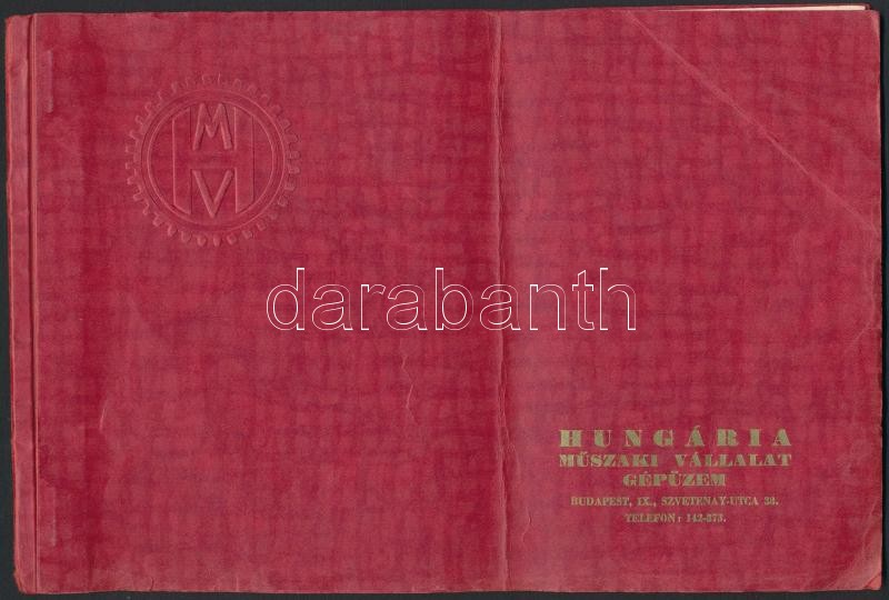 cca 1930 Hungária Műszaki Vállalat gépüzem katalógusa, 16x24 cm https://www.darabanth.com/hu/292-Gyorsarveres/292.0/Festmeny-mutargy-papirregiseg-egyeb/Nyomtatvanyok~30/cca-1930-Hungaria-Muszaki-Vallalat-gepuzem-katalogusa-16x24-cm~II1544274