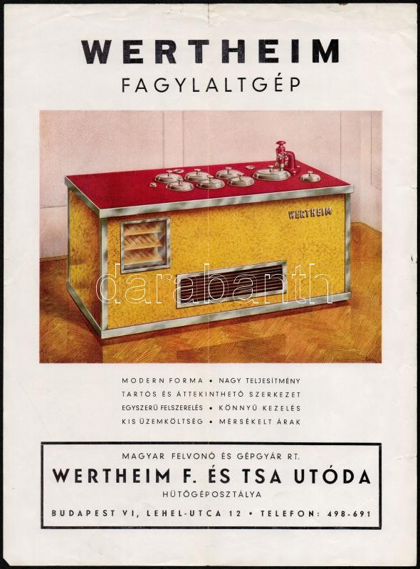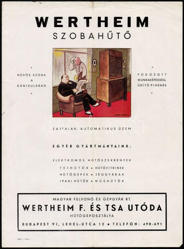 cca 1930 Wertheim szobahűtő és fagylaltgép szórólap, Pólya Tibor rajzá... https://www.darabanth.com/hu/292-Gyorsarveres/292.0/Festmeny-mutargy-papirregiseg-egyeb/Nyomtatvanyok~30/cca-1930-Wertheim-szobahuto-es-fagylaltgep-szorolap-Polya-Tibor-rajzaval-31x23-cm~II1544279