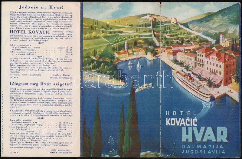 cca 1935-1940 Hvar, Jugoszlávia, Hotel Kovacic képes ismertető prospek... https://www.darabanth.com/hu/292-Gyorsarveres/292.0/Festmeny-mutargy-papirregiseg-egyeb/Nyomtatvanyok~30/cca-1935-1940-Hvar-Jugoszlavia-Hotel-Kovacic-kepes-ismerteto-prospektus~II1545109