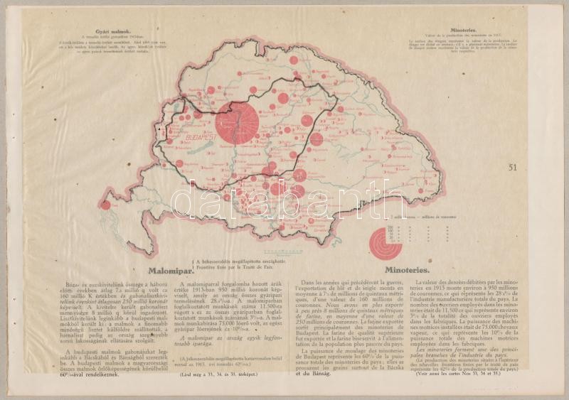 Leírás: cca 1920 Magyarország malomipara 1913-ban, ráhajtható pauszpapírral rajta a trianoni határokkal, 26x37 cm