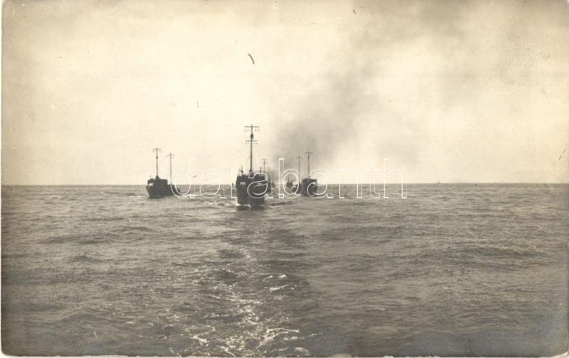 Leírás: Osztrák-Magyar haditengerészet Tátra osztályú rombolói hadi alakzatban / K.u.K. Kriegsmarine, Tátra-class destroyers, photo