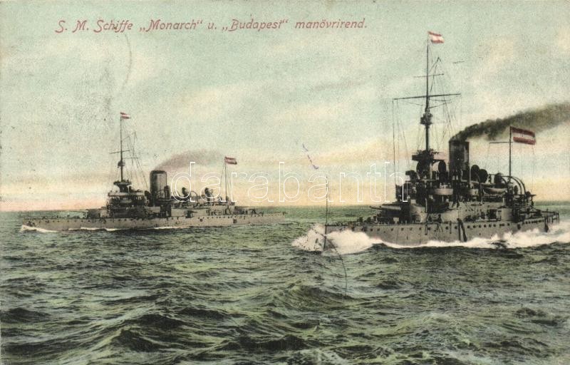 SMS Monarch und Budapest manövierend, K.u.K. Kriegsmarine, Verlag G. C... https://www.darabanth.com/hu/292-Gyorsarveres/292.0/Kepeslapok/Hadihajo~300064/SMS-Monarch-und-Budapest-manovierend-KuK-Kriegsmarine-Verlag-G-Costalunga-Austrian-Hungaria~II1548830