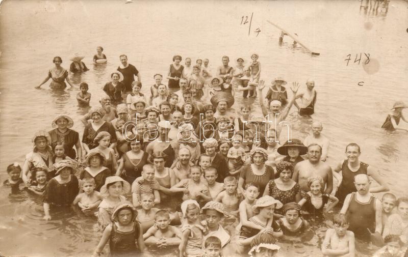 Leírás: 1916 Crikvenica, fürdőzők csoportképe / bathing people, gorup, E. Jelussich photo (fl)