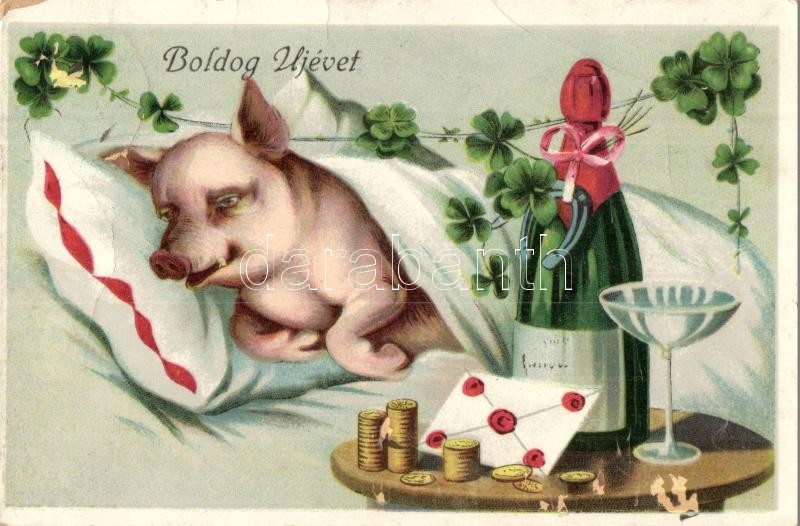 Boldog Újévet / New Year, pig, money, champagne, litho (EB) https://www.darabanth.com/hu/292-Gyorsarveres/292.0/Kepeslapok/Udvozlolapok-Unnepek~300088/Boldog-Ujevet-New-Year-pig-money-champagne-litho-EB~II1544613