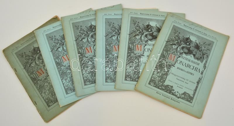 Az Osztrák-Magyar Monarchia írásban és képben. Magyarország III. kötetének 15., 16., 17., 18., 19., illetve IV. kötetének 1. füzete. Kiadói papírkötésben, példányonként változó állapotban.