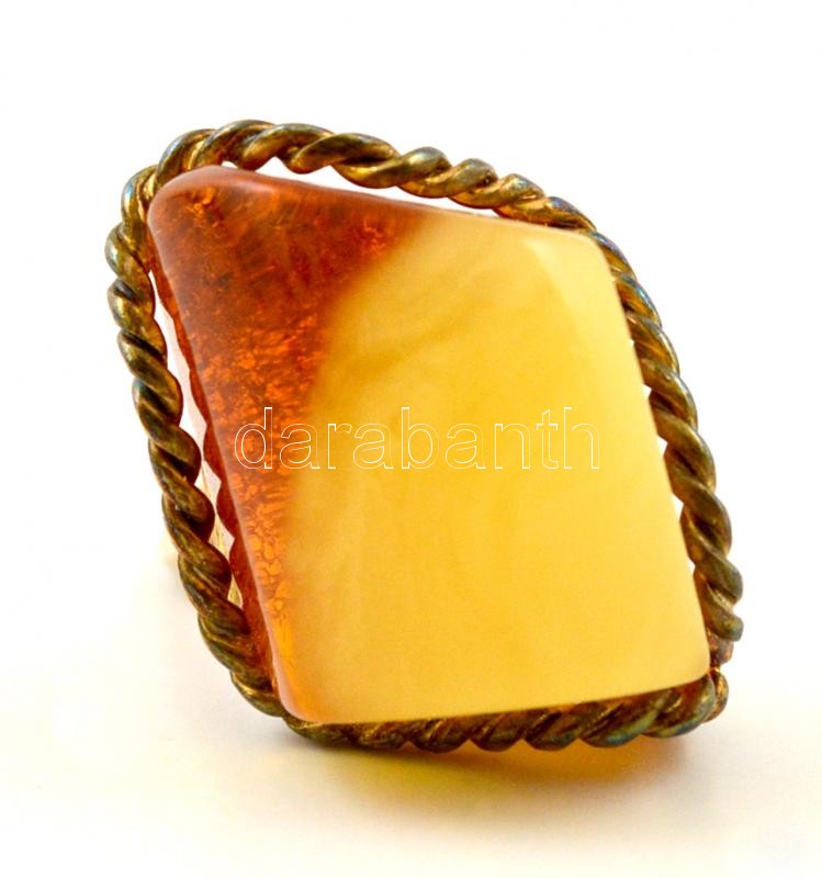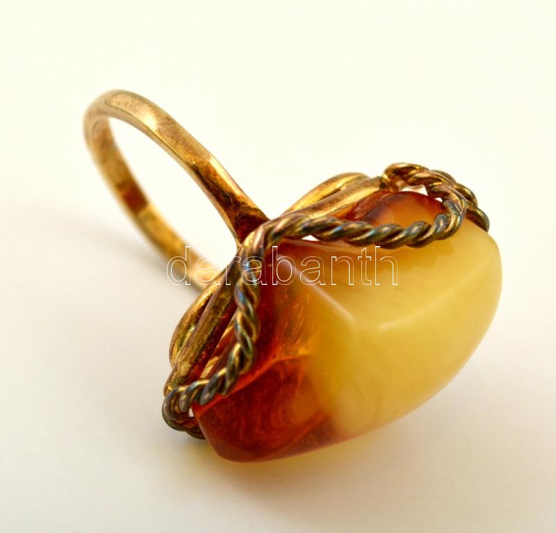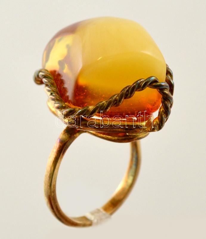 Leírás: Aranyozott ezüst(Ag) gyűrű, borostyánnal, méret: 60, bruttó: 11 g