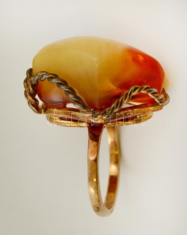 Aranyozott ezüst(Ag) gyűrű, borostyánnal, méret: 60, bruttó: 11 g https://www.darabanth.com/hu/292-Gyorsarveres/292.0/Nemesfem-Disztargyak-Orak-es-Ekszerek/Nemesfem-Disztargyak-Orak-es-Ekszerek~200001/Aranyozott-ezustAg-gyuru-borostyannal-meret-60-brutto-11-g~II1547459