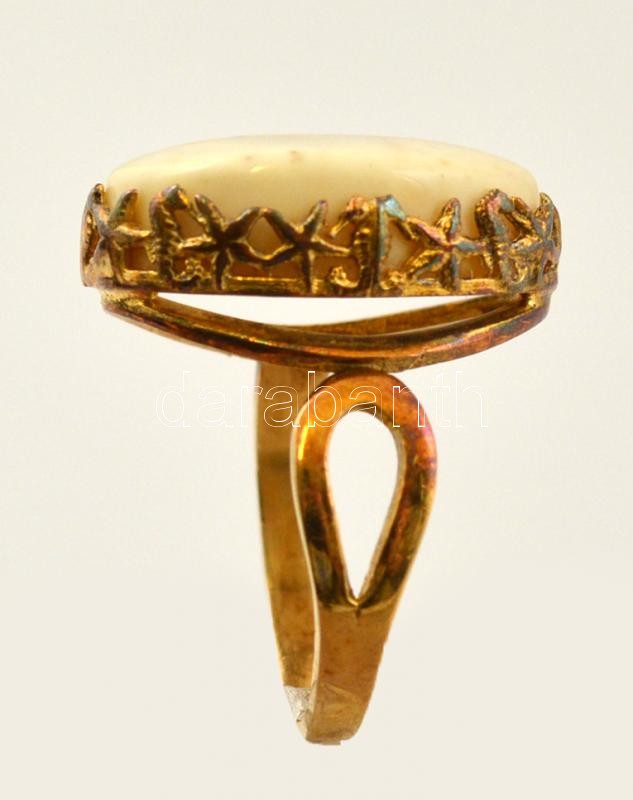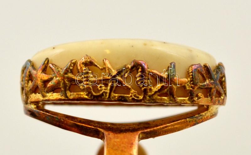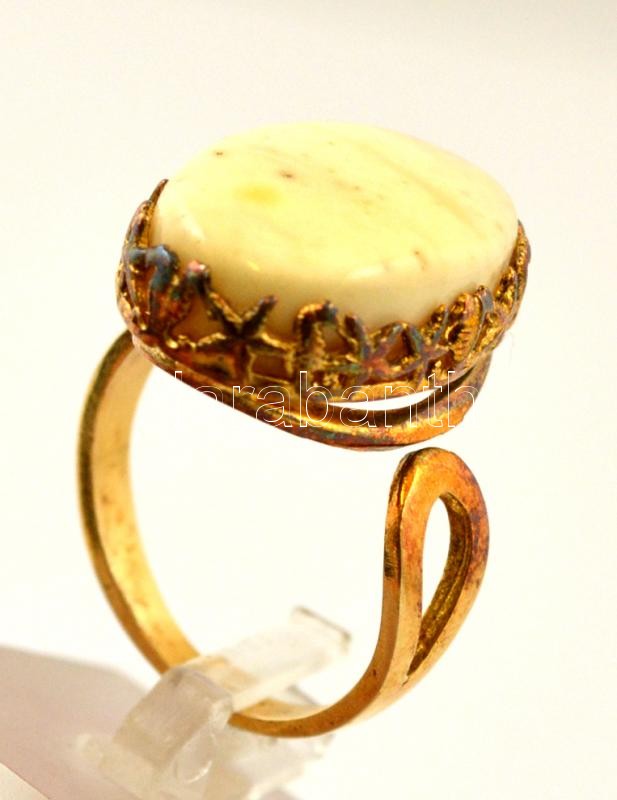 Leírás: Aranyozott ezüst(Ag) gyűrű, fehér borostyánnal, jelzett, méret: 56, bruttó: 4,9 g