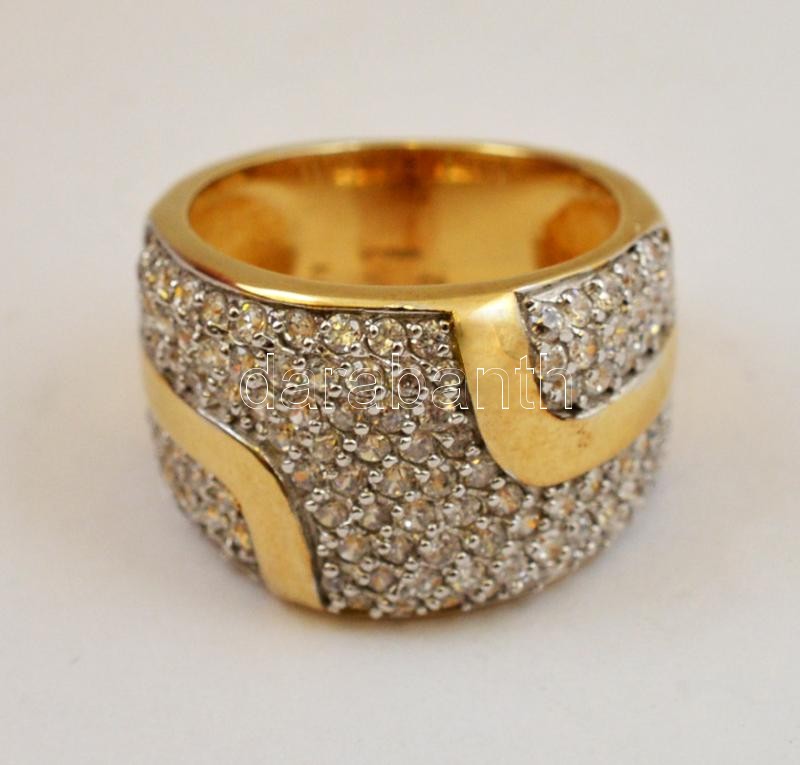 Leírás: Ezüst(Ag) aranyozott apró kövekkel díszített gyűrű, jelzett, méret: 54, bruttó: 9,1 g