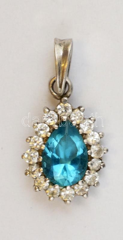 Leírás: Ezüst(Ag) csiszolt üveggel díszített függő, jelzett, 2,5x1,3 cm, bruttó: 2,4 g