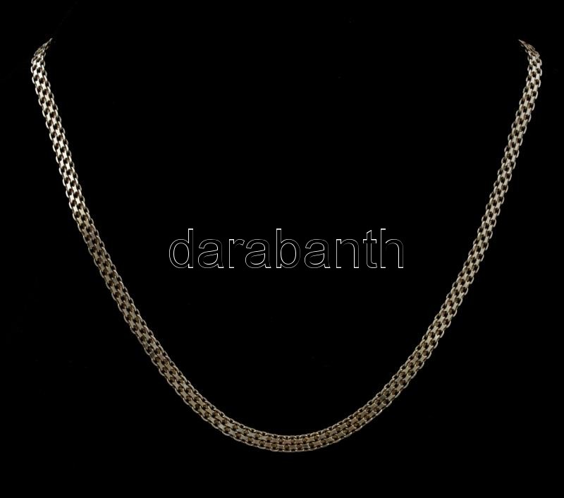 Leírás: Ezüst(Ag) fonott háromsoros nyaklánc, jelzett, h: 45 cm, nettó: 11,1 g