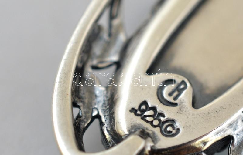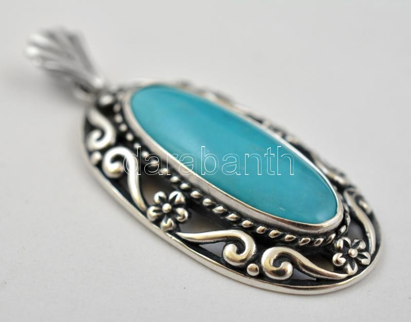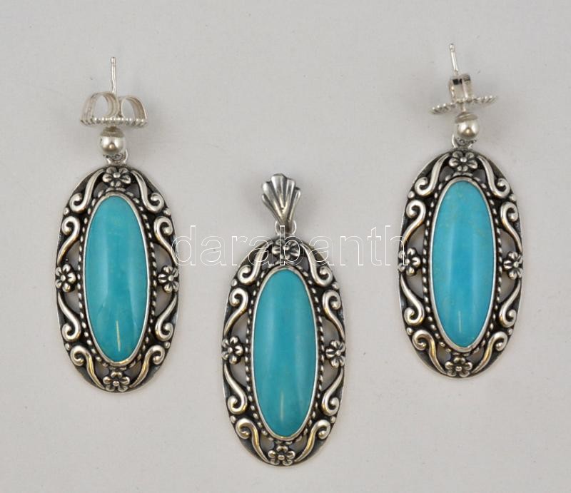 Leírás: Ezüst(Ag) kék köves fülbevaló és függő, jelzett, bruttó: 16,8 g