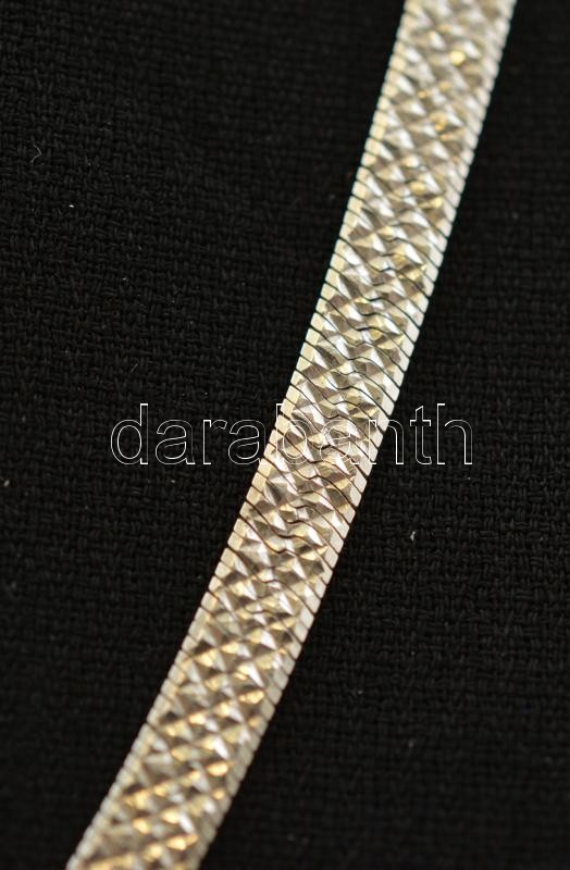 Leírás: Ezüst(Ag) pikkelymintás lapos kígyó nyaklánc, jelzett, h: 46 cm, nettó: 9,6 g