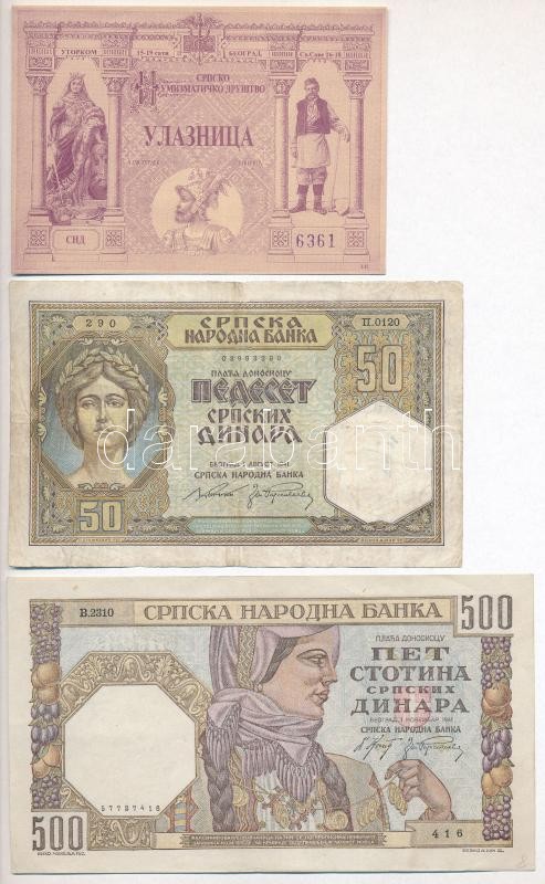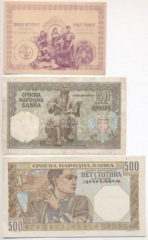 Szerbia / Német megszállás 1941. 50D + 500D + 20Fr modern fantázia bankjegy T:I-III