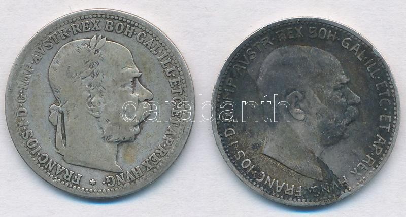 Leírás: Ausztria 1901-1914. 1K Ag "Ferenc József" (2x) T:2- patina