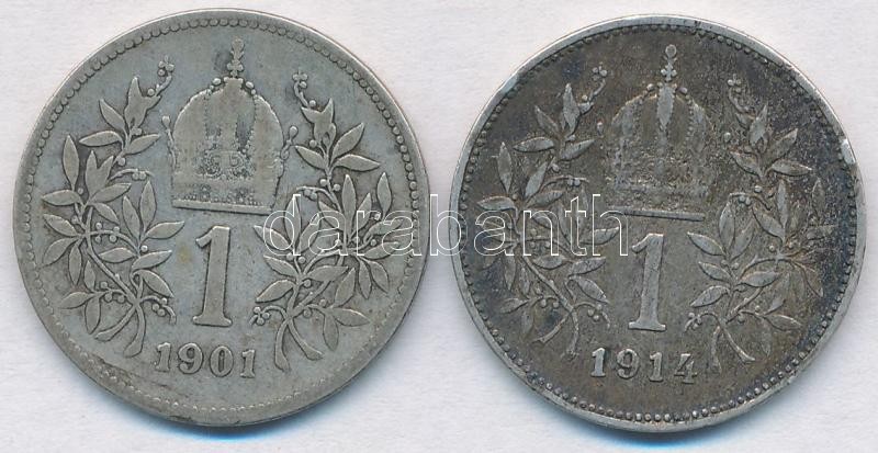 Ausztria 1901-1914. 1K Ag "Ferenc József" (2x) T:2- patina