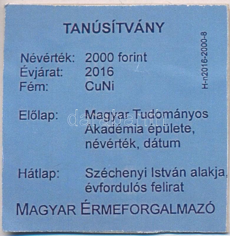 Leírás: 2016. 2000Ft Cu-Ni "225 éve született Széchenyi István" (66,9g/52,5mm) T:BU
