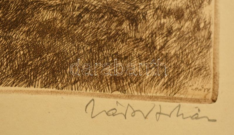 Leírás: Zádor István (1882-1963): Országút. Rézkarc, papír, jelzett, 24×31 cm