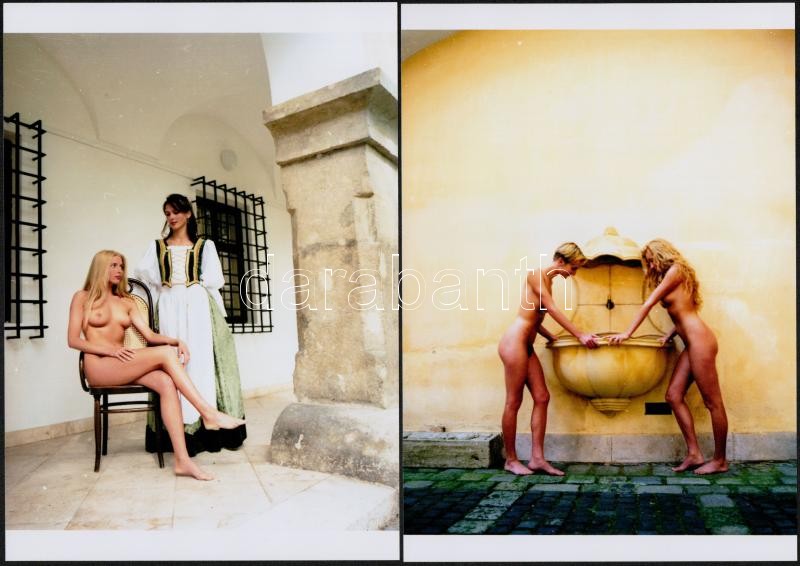 cca 1979 Páros képek - páratlan szépségek, 4 db szolidan erotikus fotó, vintage negatívokról készült mai nagyítások, 25x18 cm / 4 erotic photos, 25x18 cm