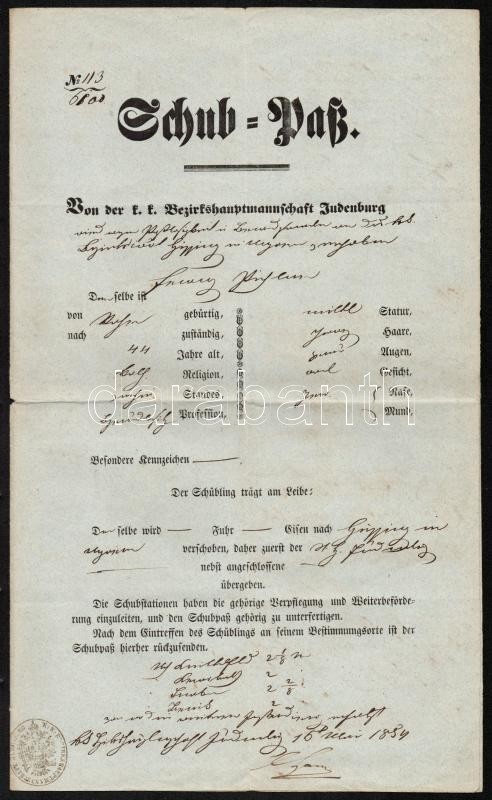 1854 Útlevél Schuh pass / Passport https://www.darabanth.com/hu/293-Gyorsarveres/293.0/Festmeny-mutargy-papirregiseg-egyeb/Okmanyok~200017/1854-Utlevel-Schuh-pass-Passport~II1555751