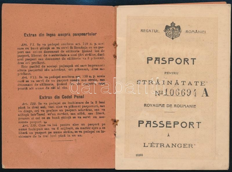 1921 Román útlevél, különféle bejegyzésekkel https://www.darabanth.com/hu/293-Gyorsarveres/293.0/Festmeny-mutargy-papirregiseg-egyeb/Okmanyok~200017/1921-Roman-utlevel-kulonfele-bejegyzesekkel~II1550438