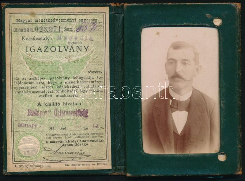 Leírás: cca 1929 MÁV fényképes igazolvány vasúti dolgozó részére