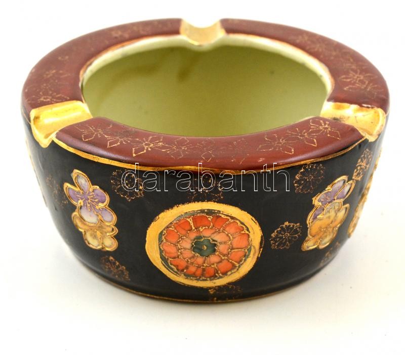 Leírás: Kínai porcelán hamutartó, kézzel festett, jelzett, kis kopásnyomokkal, d: 11,5 cm