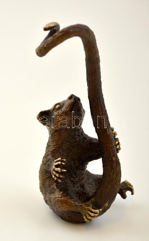 Leírás: Óratartó, ékszertartó maki majom figura, réz, jelzett (Elir), m: 14 cm