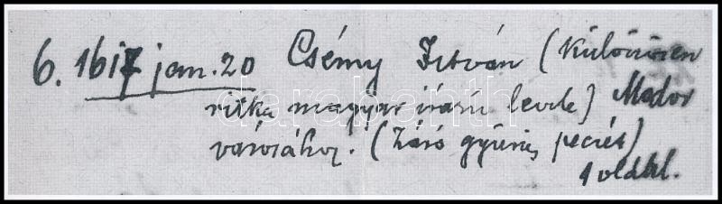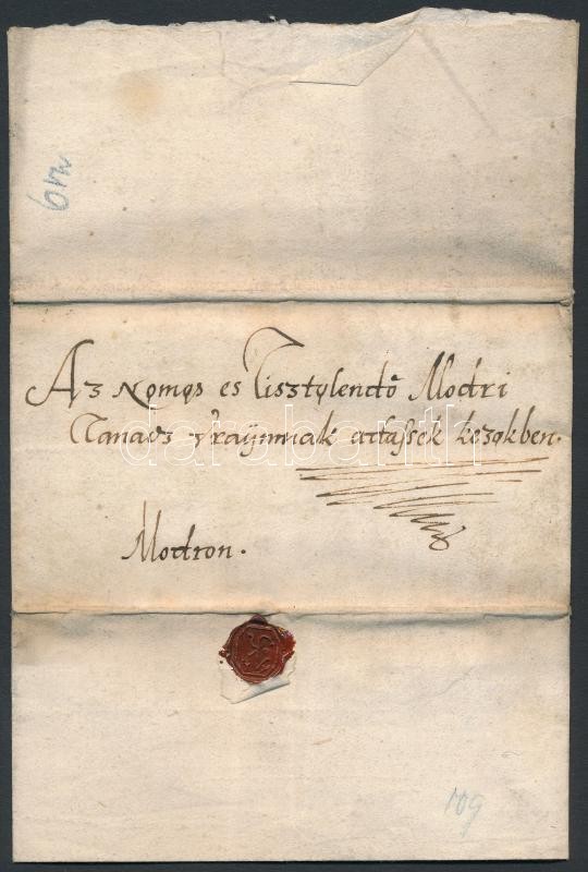 1617 Kevy István nagyszombati polgár magyar nyelvű levele Modor (ma: Modra, Szlovákia) város tanácsához személyes ügyekben, a külzeten rányomott viasz gyűrűspecséttel