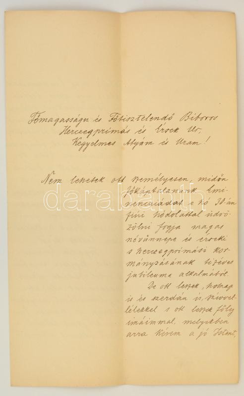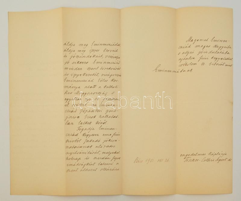 1901 Bécs, Fischer-Colbrie Ágost(1863-1925) kassai püspök, a bécsi Pázmáneum egykori rektorának kézzel írt kétoldalas üdvözlő levele Vaszary Kolos(1832-1915) bíboros részére
