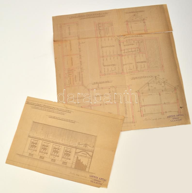 1929 Makói lakóház aláírt, jelzett tervrajzai. Két rajz. https://www.darabanth.com/hu/293-Gyorsarveres/293.0/Festmeny-mutargy-papirregiseg-egyeb/Tortenelmi-dokumentumok-keziratok-erdekessegek~200018/1929-Makoi-lakohaz-alairt-jelzett-tervrajzai-Ket-rajz~II1553316