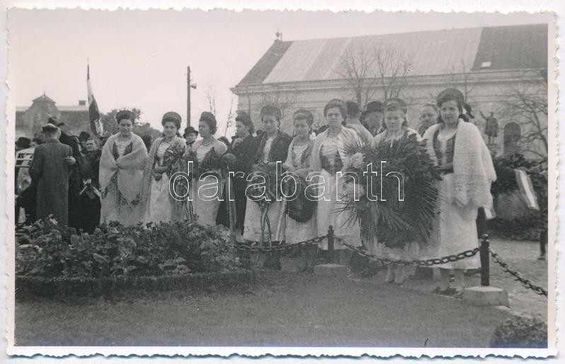 Leírás: 1940 Nagyszalonta, Salonta; Országzászló avatás, honleányok / Hungarian Flag inauguration, women, Zsák Jenő Jászberényi photo