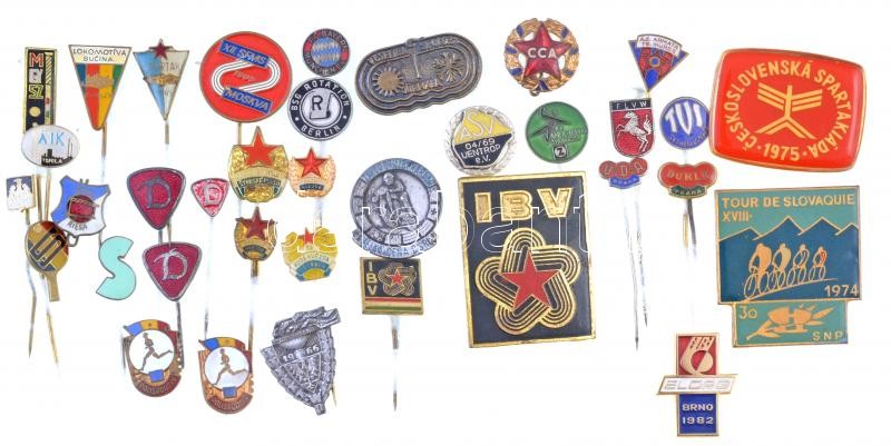 81db-os vegyes, nagyrészt külföldi jelvény és kitűző tétel, közte sport és verseny tematikájúak: "Spartak 1945", "Tour de Slovaquie XVIII", "Dukla Praha", illetve egyéb "ZOO Pécs", II. János Pál portréja, "Hotel Moskva CSSR Gottwaldov" T:2,2- 81pcs of various badges and pins, including sport and championships themed: Spartak 1945", "Tour de Slovaquie XVIII", "Dukla Praha", as well as "ZOO Pécs", portrait of John Paul II, "Hotel Moskva CSSR Gottwaldov" C:XF,VF