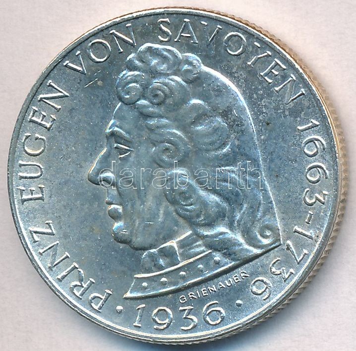 Austria 1936. 2 S... https://www.darabanth.com/hu/293-Gyorsarveres/293.0/Numizmatika/Kulfoldi-fem-es-ezustpenzek~300013/Ausztria-1936-2Sch-Ag-Szavolyai-Jeno-herceg-T1---Austria-1936-2-Schilling-Ag-Eugen-von-Savoye~II1550072
