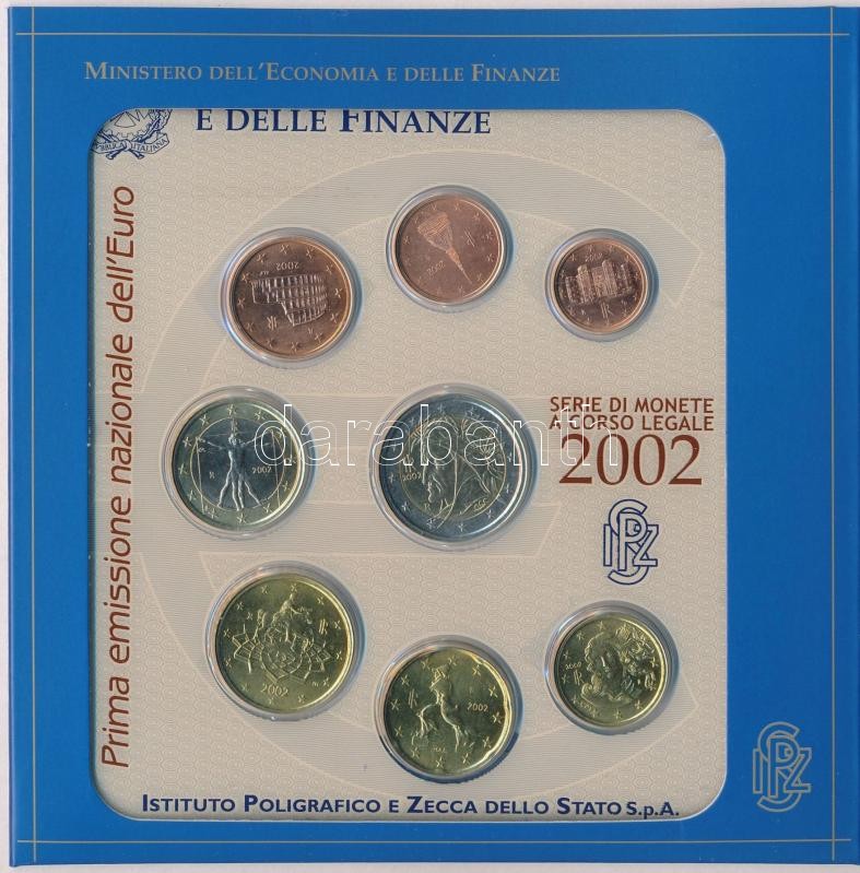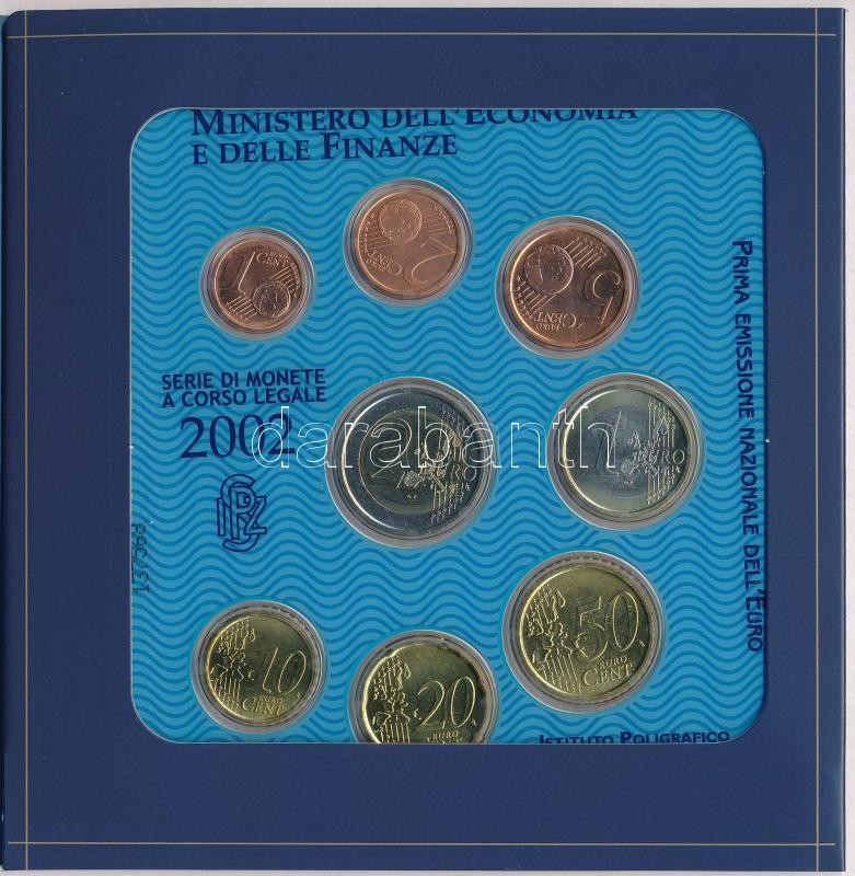 Olaszország 2002. 1c-2E (8x) forgalmi sor, "Az első nemzeti Euro kiadás", karton dísztokban T:1