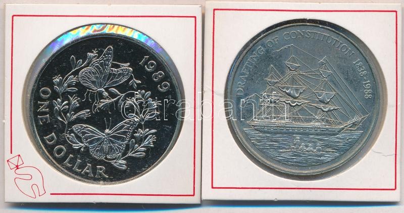 Leírás: Vegyes: Pitcairn-szigetek 1988. 1$ Cu-Ni "Alkotmány megfogalmazása 1838-1988" + Bermuda 1989. 1$ Cu-Ni "Monarch lepkék védelme" T:1-,2 karc